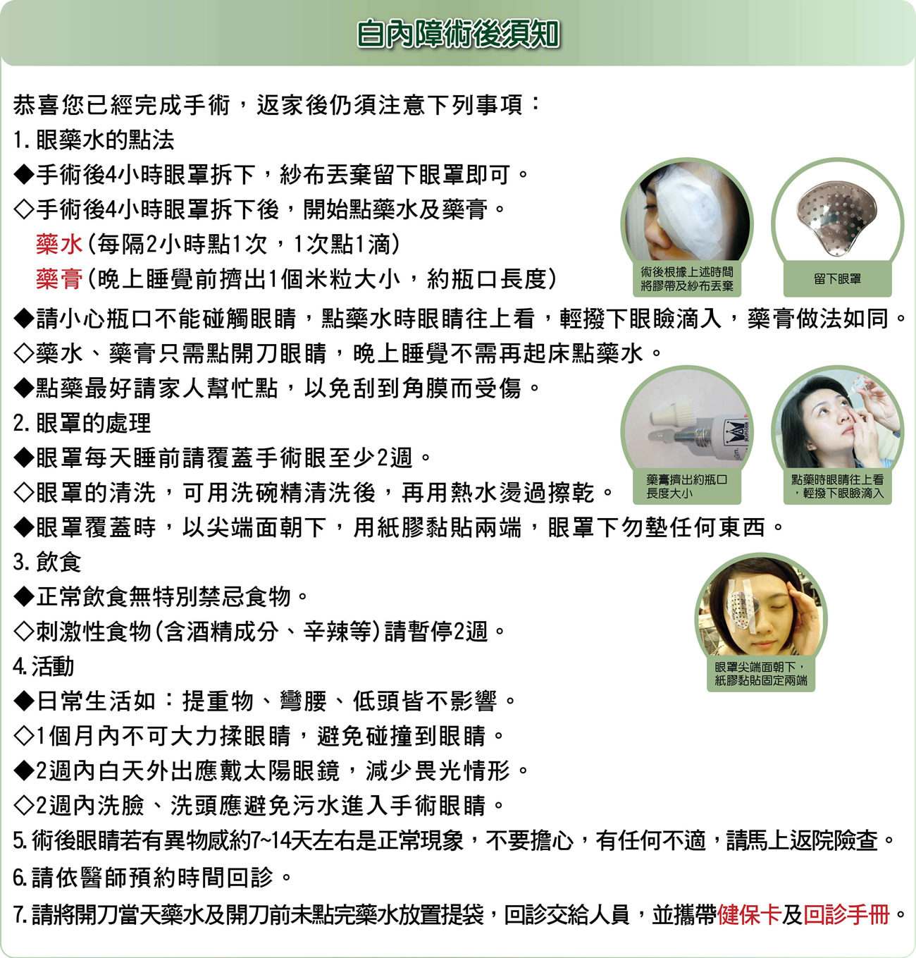 目前白內障手術均保留原來之後囊,以便置入人工水晶體,少數人在幾個月或幾年後可能因體質關係,或選擇植入的人工水晶體設計上的個別性,而使後囊再度變厚,引發視力模糊,這就是續發性白內障。此時用雅各雷射照射即可治療,外表無傷口,也不用開刀,過程只要2至5分鐘,就可恢復清晰的視力。